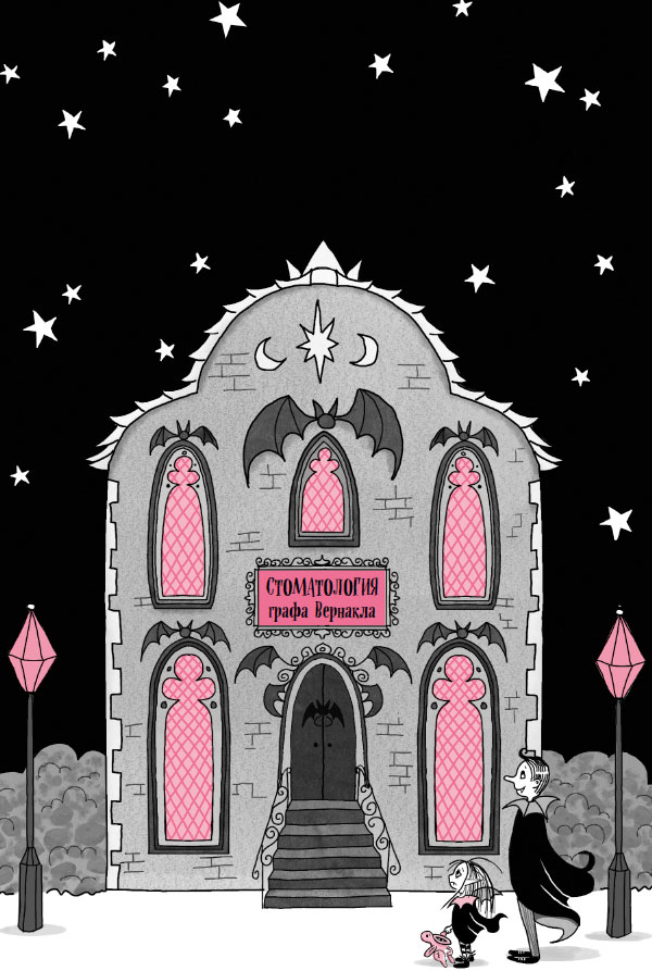 – Тут совершенно нечего бояться, – отмахнулся папа. – Мой стоматолог – очень милый и добрый вампир. Его зовут граф Вернакл. Он только быстренько проверит твои зубки, и всё! Всего пара минут. Зато потом мы можем сходить с тобой полакомиться чем-нибудь вкусненьким. Как насчёт того ресторана, о котором ты всё время твердишь? Того, который так нравится твоим друзьям-одноклассникам?