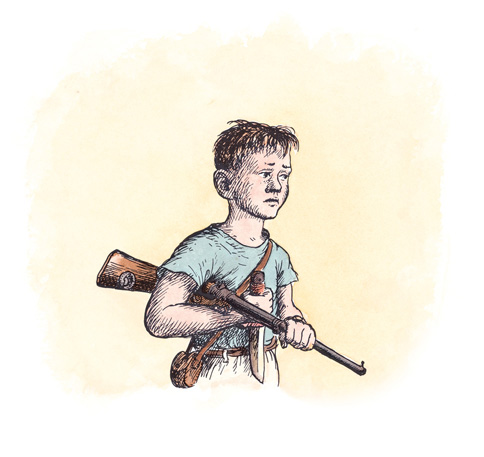 She closed the carton carefully. First she kissed her father, then she kissed her mother. Then she opened the lid again, lifted the pig out, and held it against her cheek. At this moment her brother Avery came into the room. Avery was ten. He was heavily armed – an air rifle in one hand, a wooden dagger in the other.