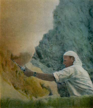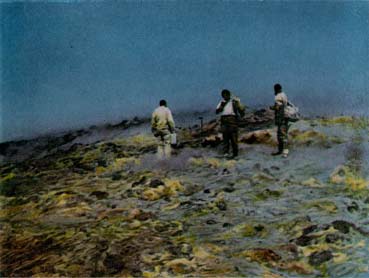 В сольфатаре Центрального кратера на Этне в 1963 году. Эльскенс, Тонани и. Шемине приготовились, чтобы взять пробы газов и других выбросов