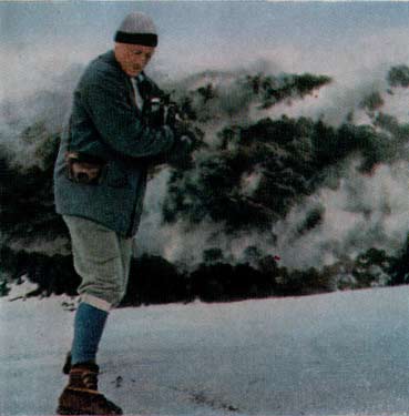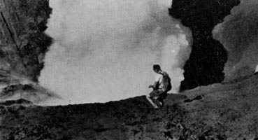 Индонезийский вулканолог доктор Т. Зен в кратере Мерапи. Июнь 1956 года