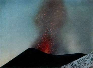 Недавно мне довелось прочесть описание, которое в конце XVIII века оставил его первый исследователь Спалланцани: «Кратер до некоторой высоты заполнен пылающим жидким веществом, подобным расплавленной бронзе. Это и есть лава, и можно видеть, как ее колеблют два явственных движения: одно – круговое и бурное внутри ее и другое – вздымающее раскаленную массу…»