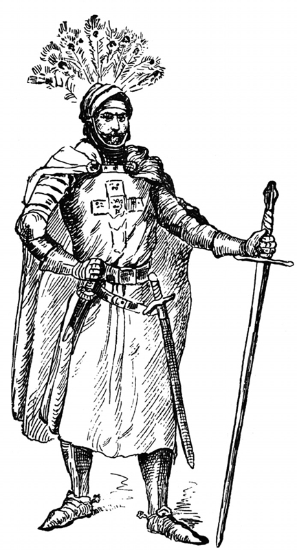 Они уже были одеты по парадному. Поверх железных кованых лат и колонтарей была накинута шерстяная белая мантия с нашитым на ней чёрным крестом. Мечи висели на железной цепи, обвитой вокруг пояса. На щитах, которые держали оруженосцы, были вычеканены их родовые гербы. Перья на шлемах были белые страусовые, забрала подняты.