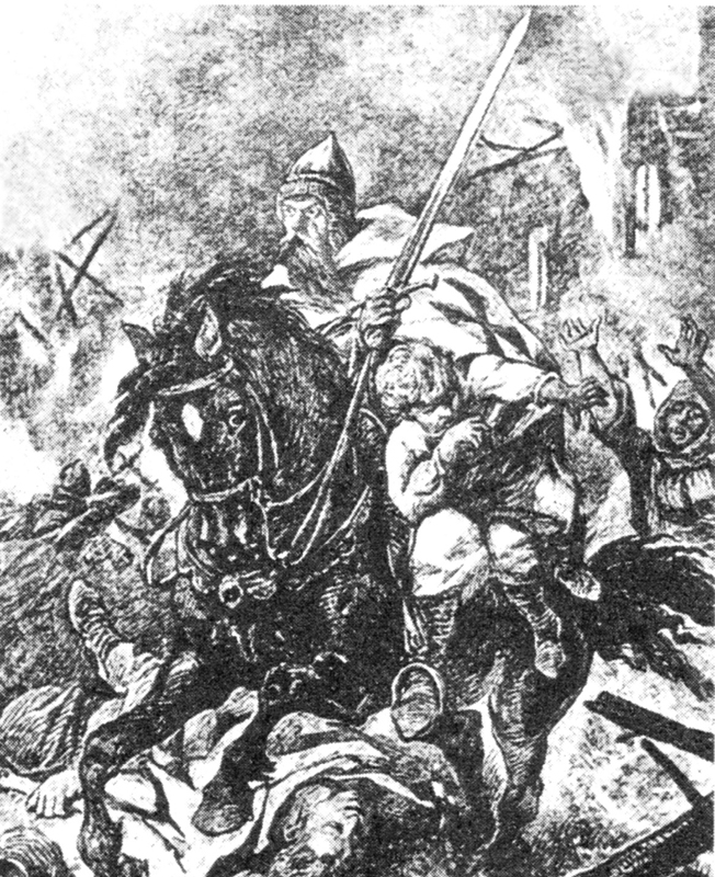 Князь и его дружина мигом приготовились к бою и поскакали к деревне, бывшей несколько в стороне от пути.