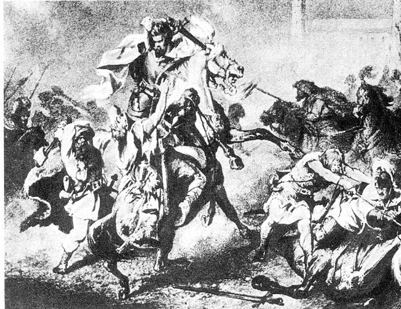 Увлеченные жаром преследования, спутники князя были далеко. На князе не было не только лат, но даже лёгкой кольчуги, тогда как соперник, весь закованный в доспехи волошской выковки, был положительно неуязвим.
