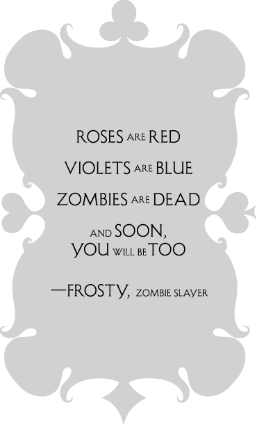 We end up at Hash Town, and as I walk through the doors, I suddenly wish I’d argued. Ali, Bronx and Reeve are at a table in back, waiting for us. Reeve and I have never been close; she was Kat’s friend, and like Kat, slaying has never been in her wheelhouse. She can’t see or hear zombies, but she’s watched us fight so many times, she’s accepted what other civilians never have: the monsters are real, and they live among us.