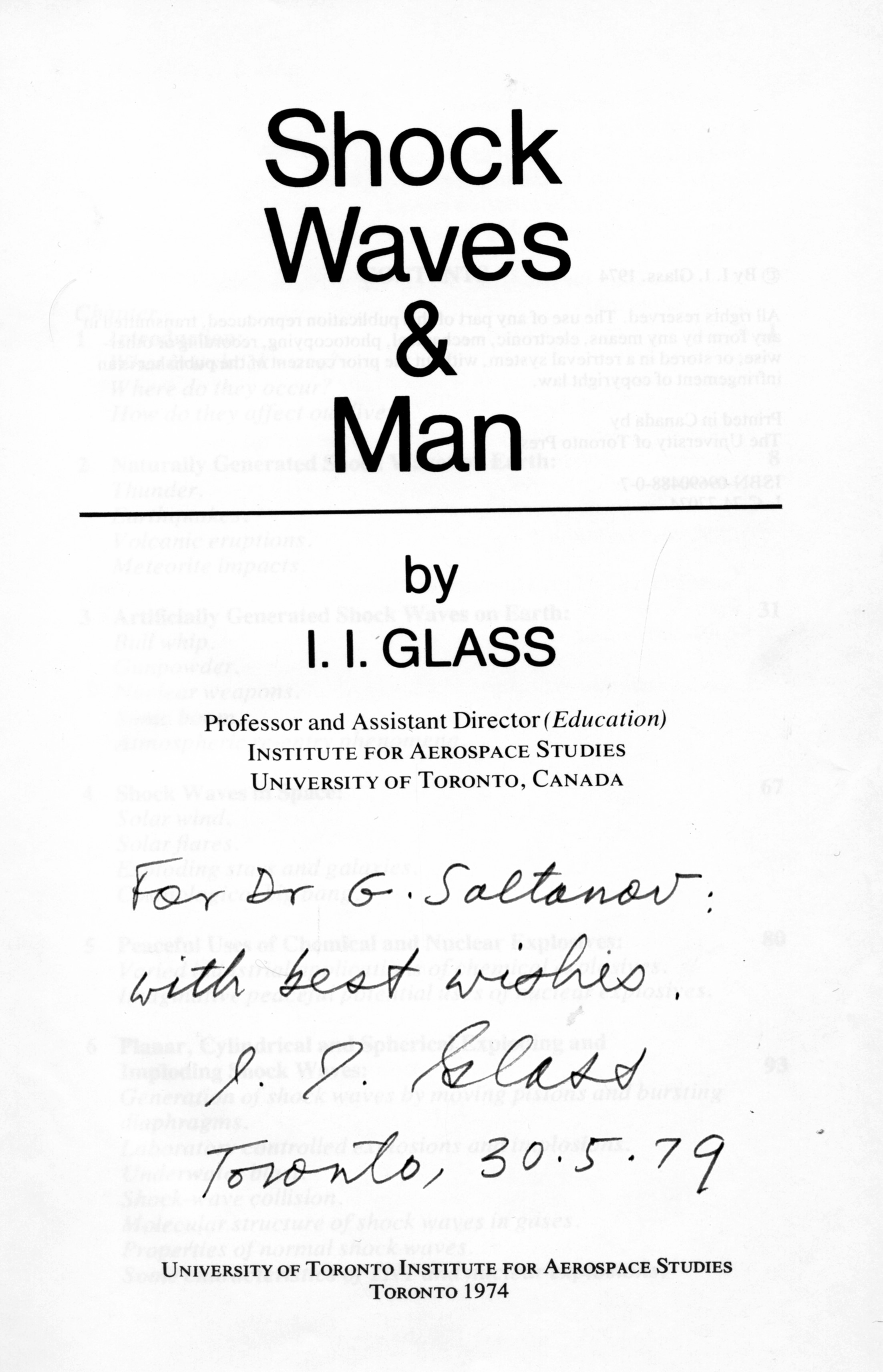 Различные типы ударных волн, в том числе и от взрыва атомных бомб, виды их воздействия прекрасно описаны в известной книге моего коллеги И. Гласса «Ударные волны и человек», 1974 г., которую он презентовал мне много лет назад (Рис. 1-2).