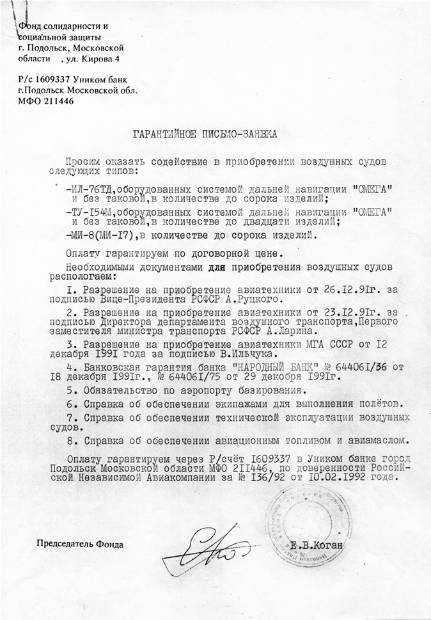 Таких предложений было немало. Для справки: Цена самолета ИЛ-76 ТД в 1992 г. была в пределах 206,5 млн. руб.