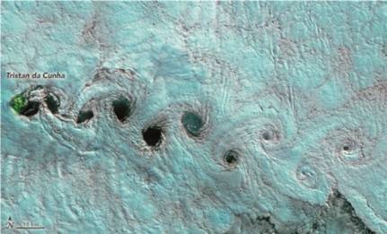 Рис. 3-8а. Дорожка Кармана при обтекании острова.