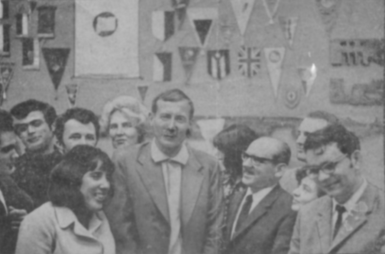 Рис. 2. «Неделя науки» В гостях у нас поэт Е.Евтушенко. (передний план – слева направо – А.Тынянова, Е.Евтушенко, за Тыняновой – Г.Салтанов)