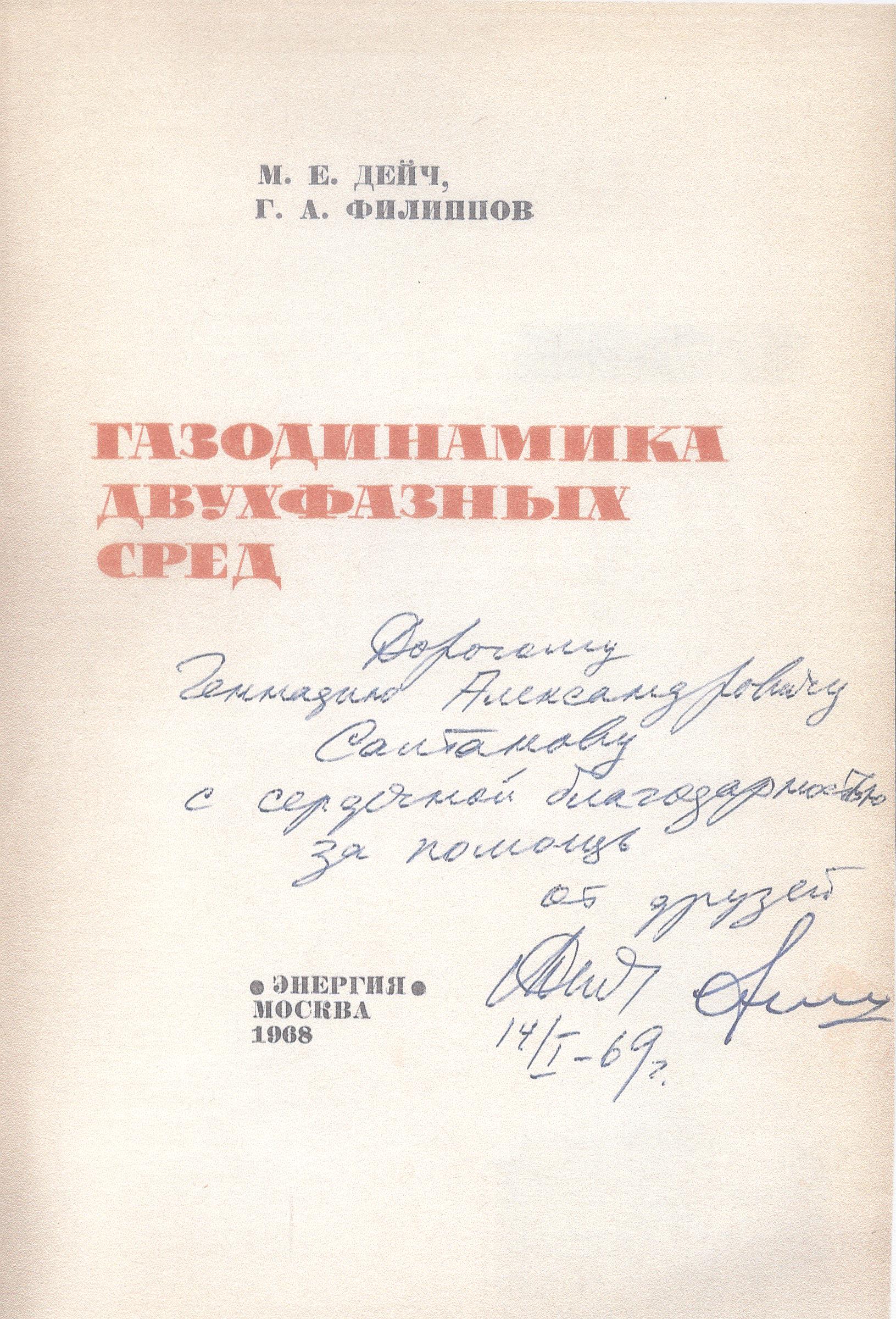 Активное участие (1966 -1968 годы) в подготовке первой основополагающей монографии Дейча – Филиппова «Газодинамика двухфазных сред»; (рис.1)