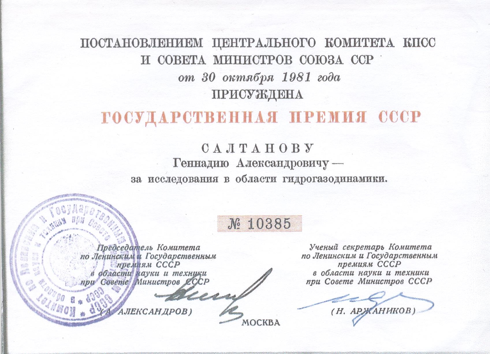 Легитимацией, т.е. официальным признанием успешности практики «ННПГ» можно считать присуждение Государственной премии СССР в 1981 году за исследования в области газодинамики». (Рис. 11, рис. 12)