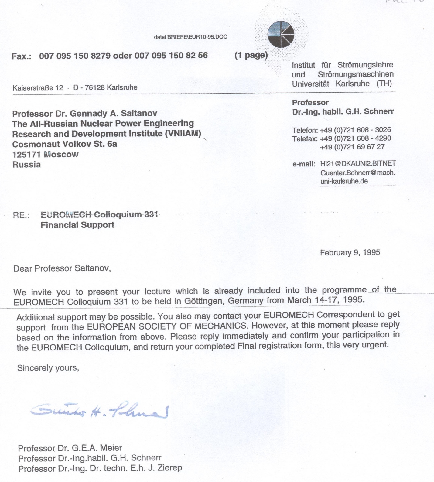 Рис. 13. Приглашение в Университет Карлсруэ, ФРГ, 1995 г. 29