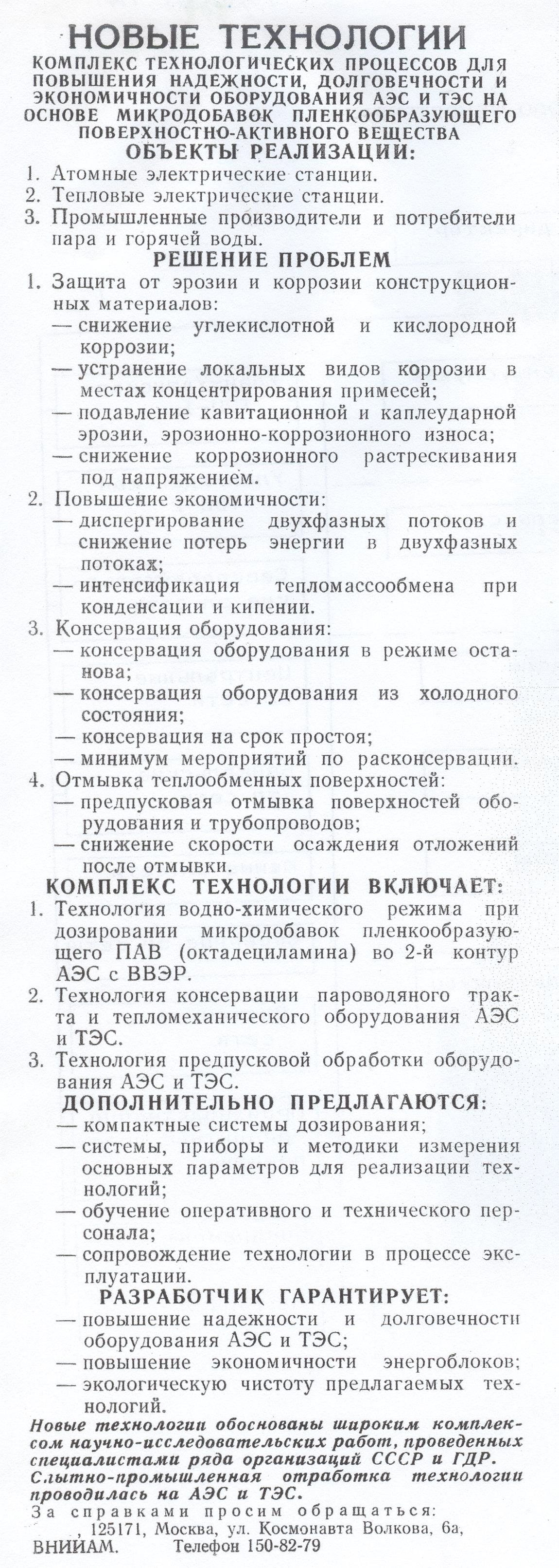 – К 1988 году ВНИИАМ совместно с партнерами завершить промышленную отработку технологии использования микродобавок ПА на блоке АЭС с реактором ВВЭР 440 с разработкой соответствующей технической документации