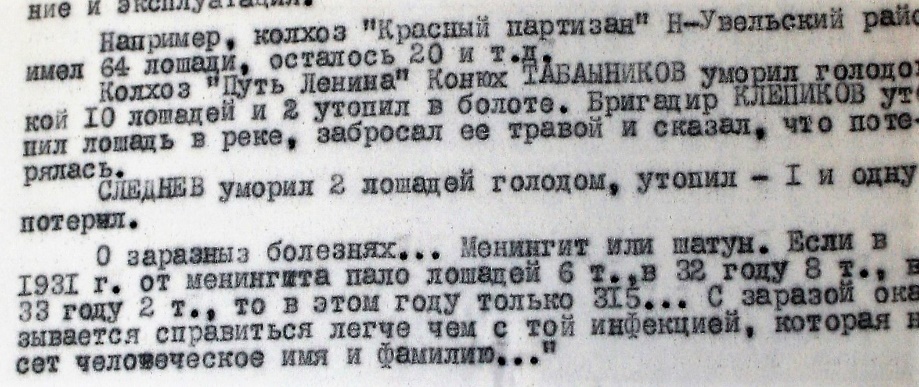 Например, колхоз «Красный партизан», Н-Увельский район, имел 64 лошади, осталось 20 и т. д.