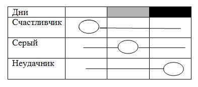 У удачливых, счастливчиков – независимые события выпадают на светлые дни, и становятся хорошими событиями, события в черные или серые дни отсутствуют (рис.).