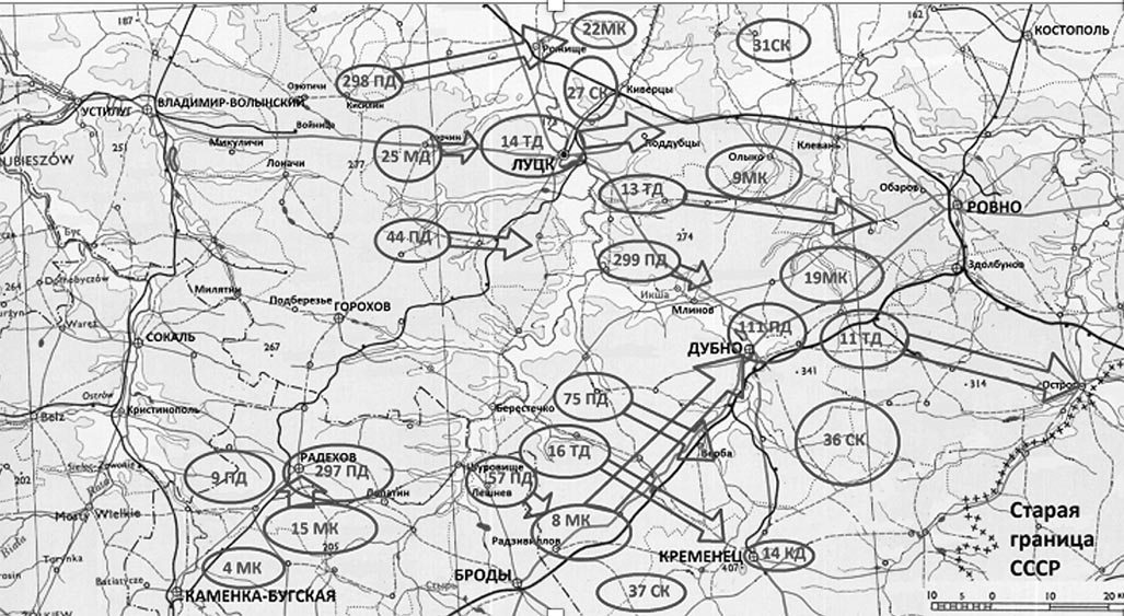 Наши командиры, после начала вторжения (войны), до этого тоже додумались и послали в Дубно стрелковую дивизию. Вот тут проясню – послали пешком. А дивизия располагалась за много часов пути от Дубно. Техники у нас для перевоза пехотинцев повсеместно не было.