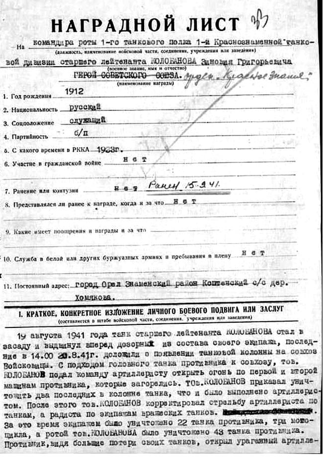 Колобанов, по результатам этого боя, был представлен к Герою Советского Союза, но звание ему не дали.