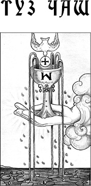 Являясь катализатором, как и все остальные Тузы, Туз Чаш усиливает именно чувственный компонент соседних карт. Клиент становится более чувствительным в рассматриваемом вопросе. Иногда бывает необходимо не столько понять, сколько прочувствовать определенную ситуацию. Туз Чаш смещает фокус внимания клиента с интеллекта на эмоциональную сферу. Он говорит о том, что некий промежуток времени клиенту будет задаваться один и тот же вопрос: что он чувствует в данный момент, – и ситуация будет развиваться таким образом, что игнорировать данный вопрос просто не получится.