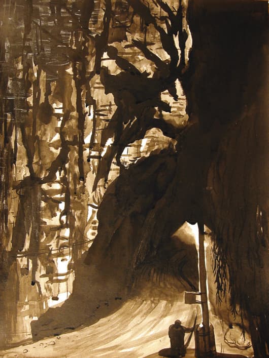 Так они и сделали. В одном из залов на Беговой во втором ряду повесили два моих рисунка, которые я делал ещё на Валааме. И тут я заметил одну особенность – мои рисунки сделаны как серия, как работы, которые дополняют друг друга. Они не повторяются, но развивают тему. Это как в симфонии, например, идёт одна тема, но она звучит в разных вариантах, с вариациями – и эти вариации обогащают тему, делают её более интересной, незабываемой, неповторимой. И я понял, что отдельные рисунки (один или даже два) производят не такое сильное впечатление на зрителей, как если их пять или шесть рядом. То есть когда рисунков много, они действуют сильнее. И я решил продолжать эту тему дальше.