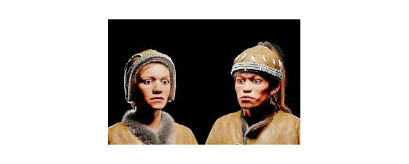 Рис. 7. Сунгирь. Девочка и мальчик из одного захоронения. Возраст захоронения 28—31 тысяча лет. У мальчика слегка негроидные черты лица