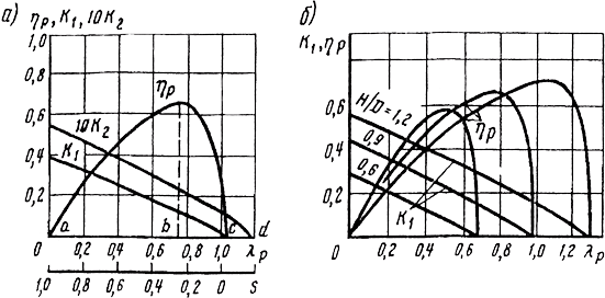 Из анализа зависимостей КПД на рисунке 1.1а и 1.1б видно, что ВРШ обеспечивает работу с высоким КПД в широком диапазоне режимов. Изменения величин λp и S происходит при значительных воздействиях на сопротивление движению судна (разгон, торможение, работа во льдах). ВРШ широко применяются в установках, где часто меняются режимы работы.