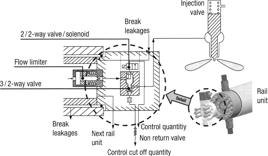 – обратные клапаны предотвращают обратный поток из системы низкого давления в цилиндр, например, в случае заклинивания форсунки;