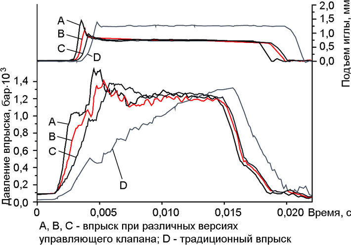 В традиционной системе нарастание величины давления впрыска ограничивается допустимой крутизной профиля топливного кулака и сжимаемостью топлива. Впрыск в начале вялый и распыливание некачественное. В системе CR происходит мгновенный подъем иглы форсунки и возрастание давления впрыска и гораздо лучшее распыливание топлива. Сгорание происходит полнее и при меньших температурах, что сокращает количество образующихся оксидов азота.