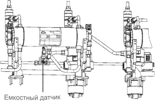Компоненты высокого давления (аккумуляторы и трубы высокого давления) двустенные, образовавшиеся полые пространства соединяются и вместе с емкостными датчиками (рис. 1.17) и детекторными винтами (рис. 1.18) образуют эффективную систему обнаружения утечек, позволяющую быстро и точно обнаруживать любые утечки, которые могут произойти.