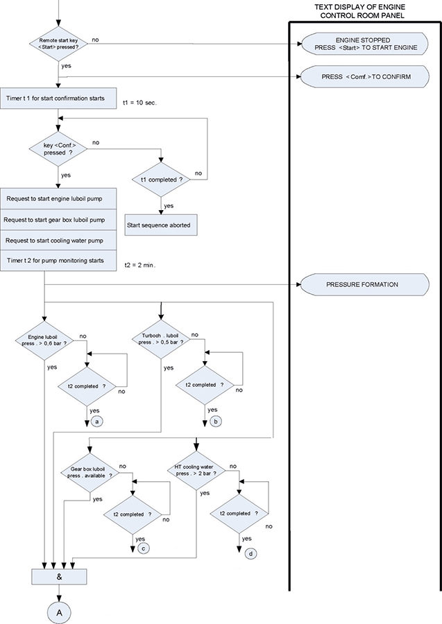 Пуск производится системой управления в соответствии с алгоритмом программы, заложенной производителем (см. рис. 1.19 –1.21. Алгоритм пуска ГД (а, б, в).