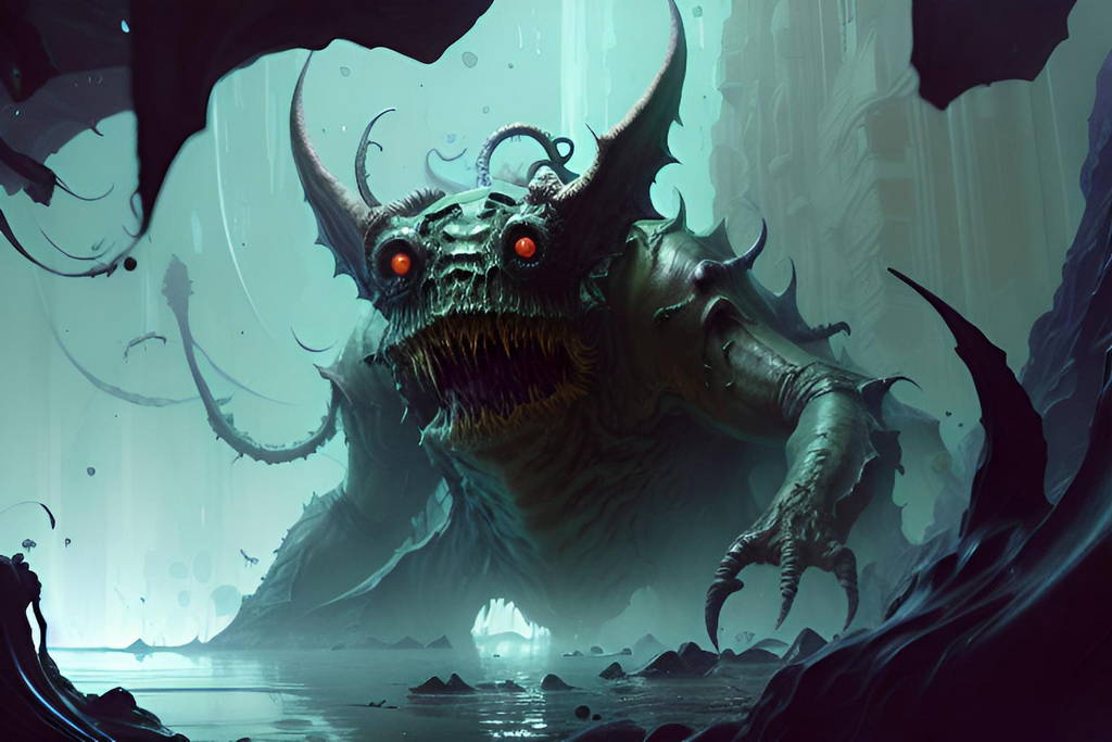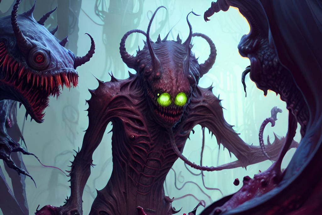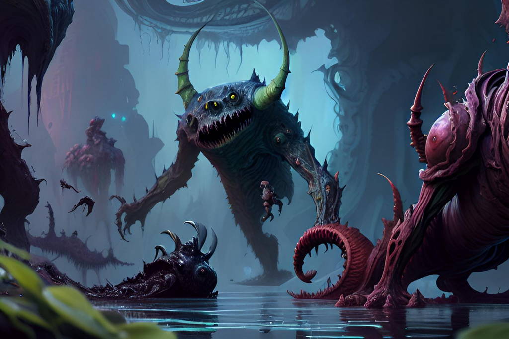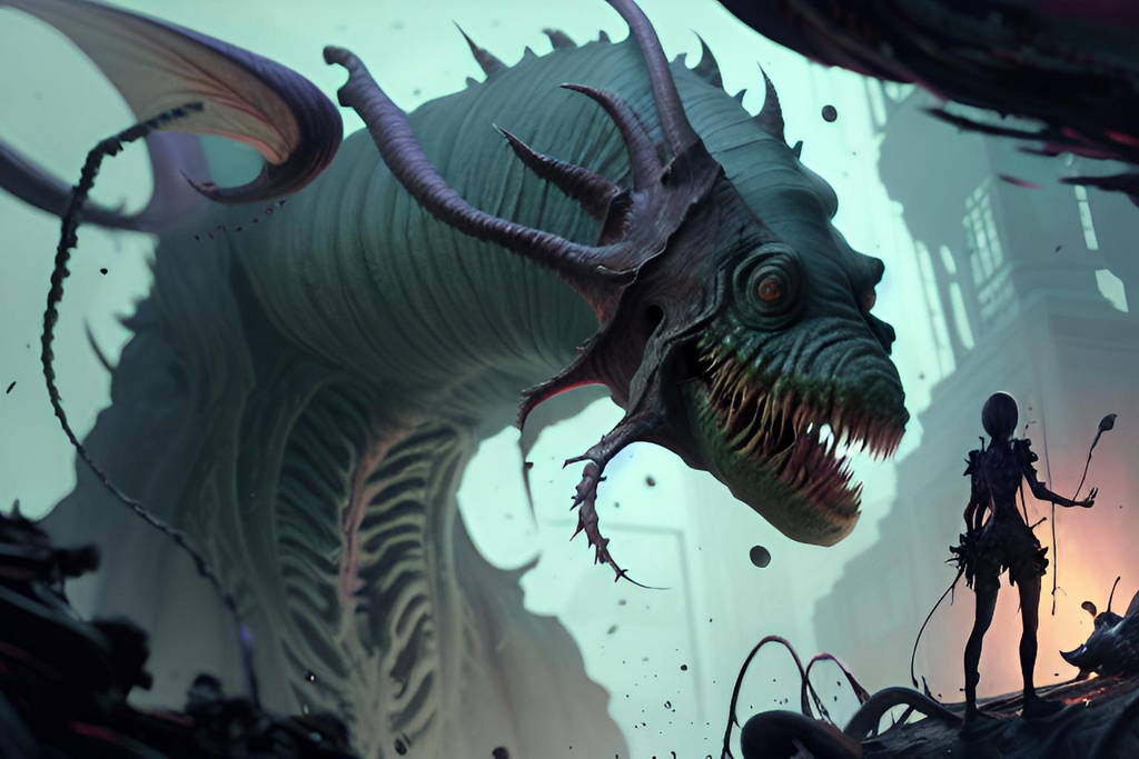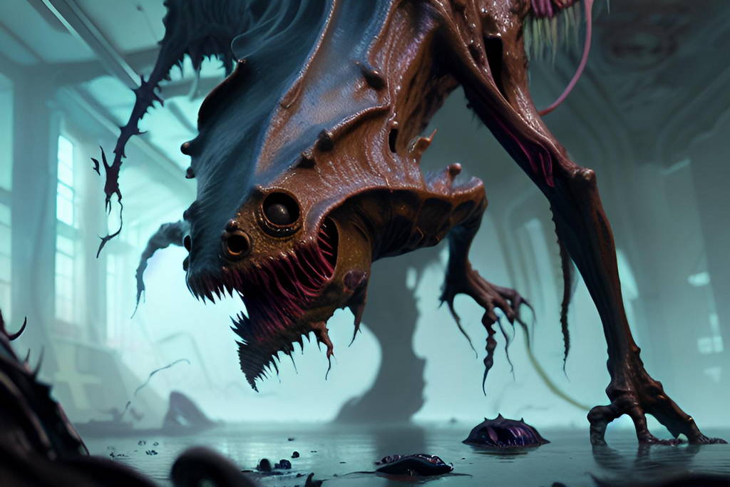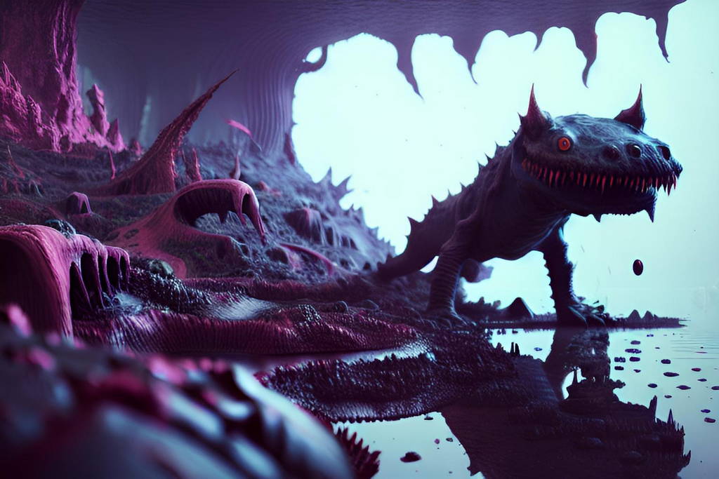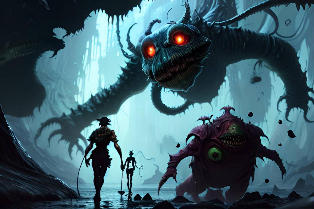 Бейкашу (тварь в центре кадра) – способный видеть в темноте, плотоядный хищник. Обоняние развито плохо. Обитают вместе со злуньчуйту. Имеет странный отросток на шее, который исполняет роль щупальца.