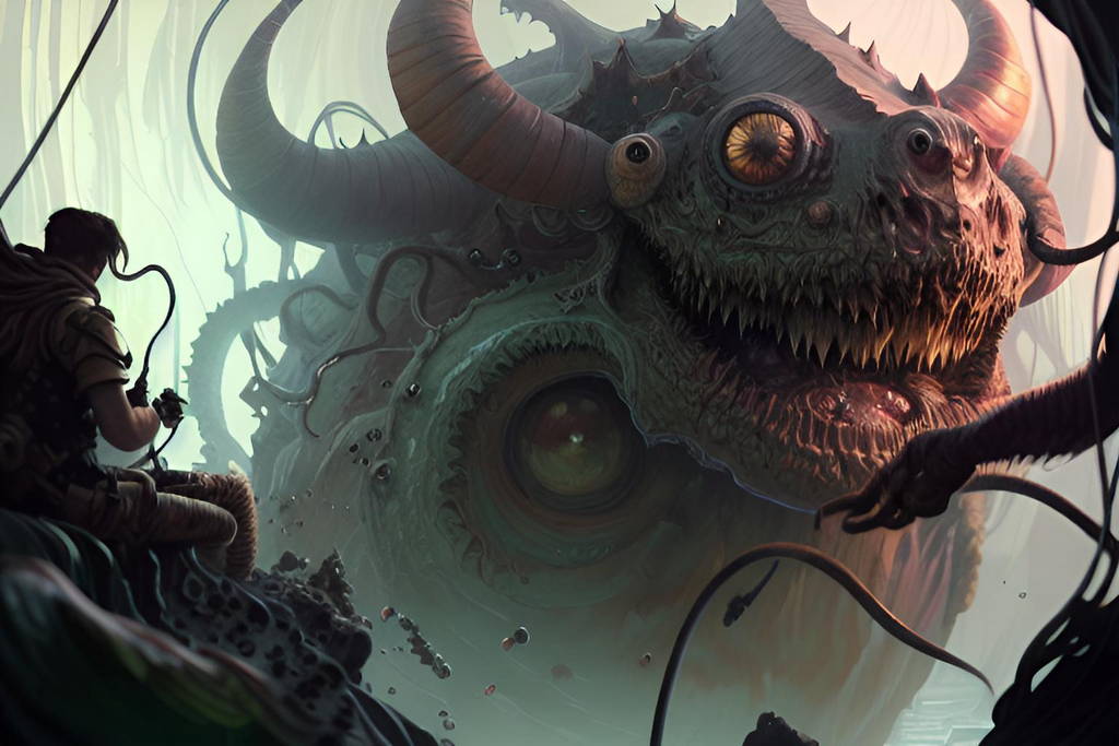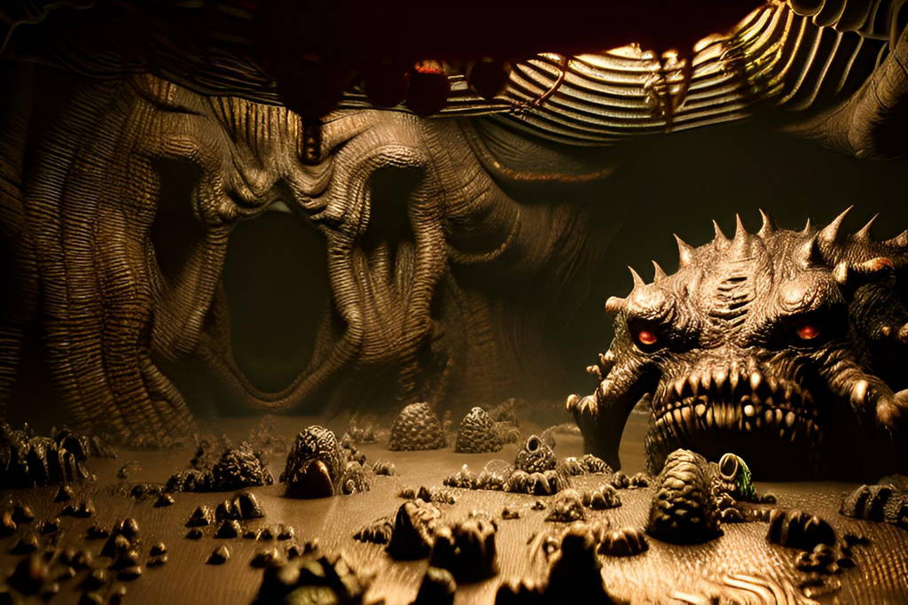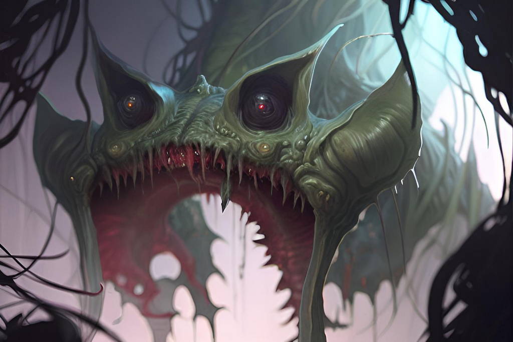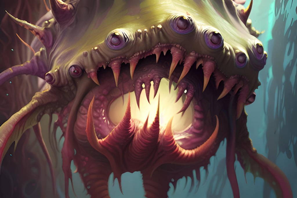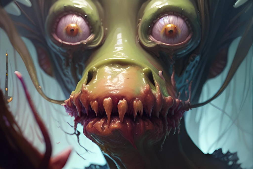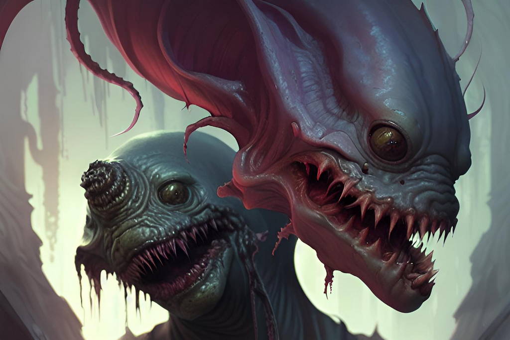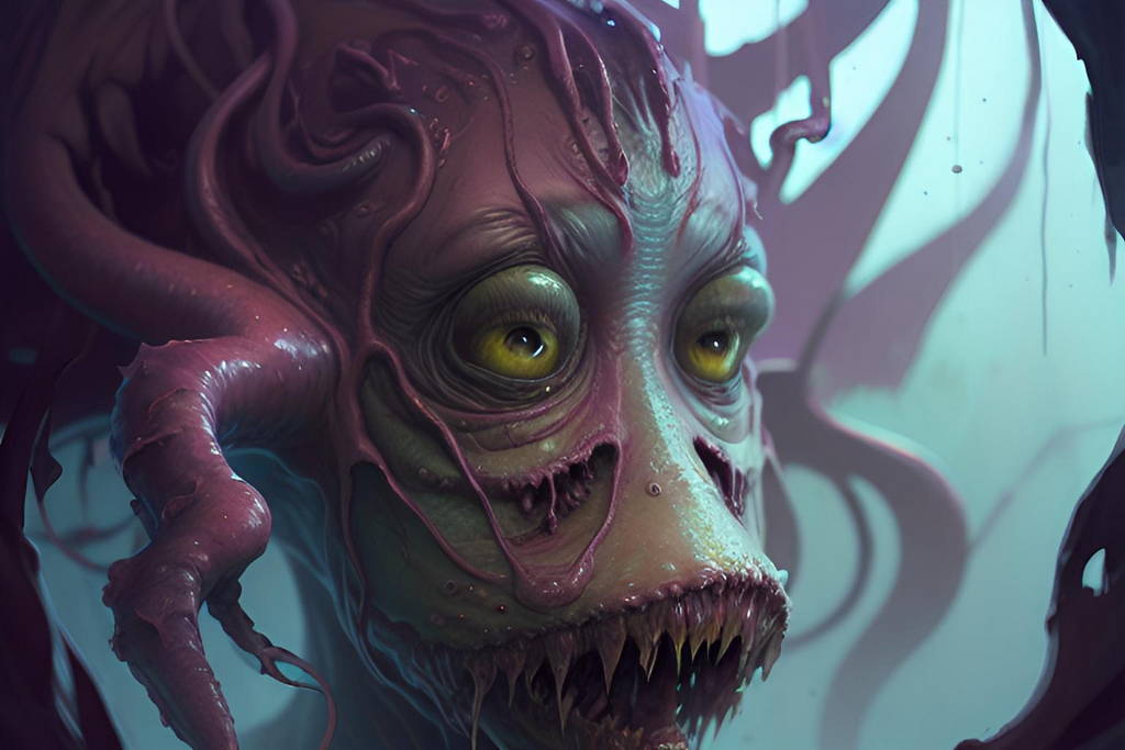 Детёныш руцолпаней всё время шипел, словно был голоден. И они, скажу я вам, очень страшные. Судя по всему, у детёнышей их вида развиты какие-то щупальца на голове, которых уже нет у взрослых. Вместо лица огромная пасть с зубами. Ну, с другой стороны, младенцу для роста нужно хорошее питание. И для этого они точно приспособлены.