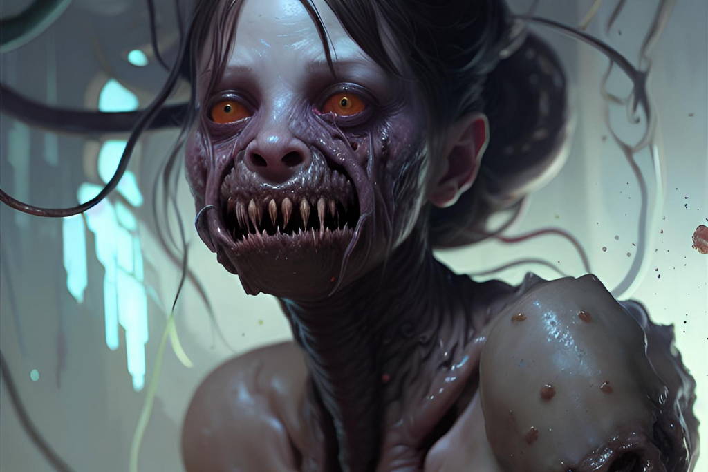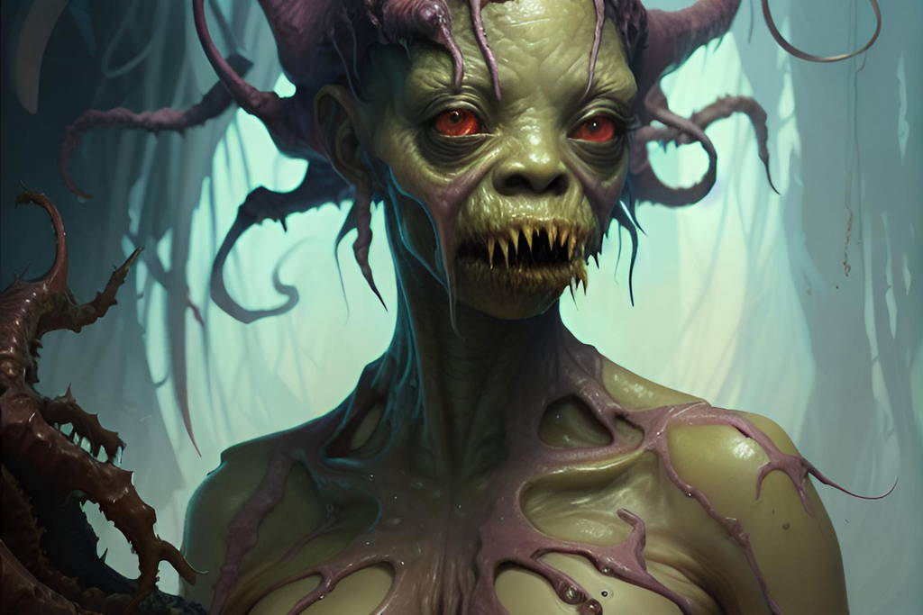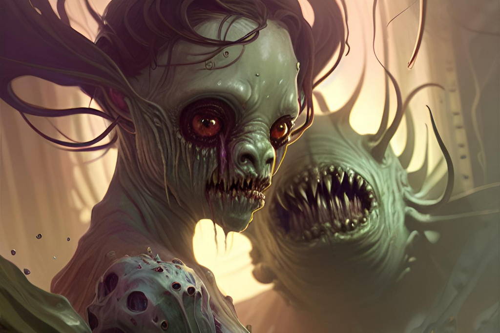 После чего появилось ещё несколько его сородичей, и они притащили ещё одну тварь. Странно, верхняя часть походила на человеческую голову, а именно волосы и ухо. Нос был расширен, но она смотрела на меня, словно просила о помощи.