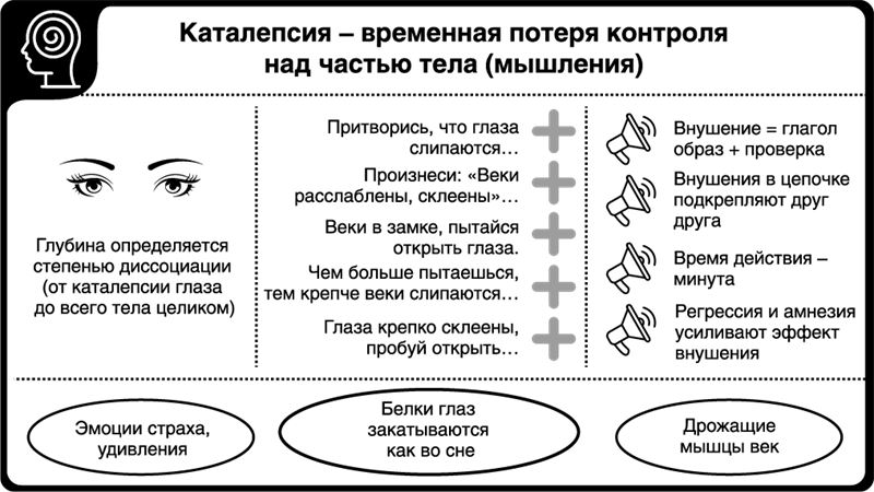 Вариант быстрой техники погружения для улицы (полная каталепсия век, моделирование амнезии). Если инструкция выполняется, то сразу без лишних сентиментов и слов – следующий шаг. Больше слов – больше сомнений, поэтому лишний текст нужен лишь для того, чтобы объяснить что-то сложное и дополнительно убедиться, что проверка прошла удачно.