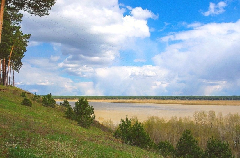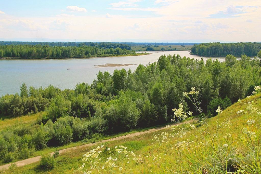А какая даль, какой простор открываются с обрыва! Река – с песчаными – и зелёными островами; тёмные, огромные – и недостижимые тополя на том берегу – и сам берег, сказочно далёкий, совсем чужой – и темнеющий в далёкой дали лес… И далеко-далеко, на самом краю неба – неровная вереница синеющих гор; я долго, долго не знал, что это – горы, думал – облака, тучи… Оказалось – горы, Алтайские горы.