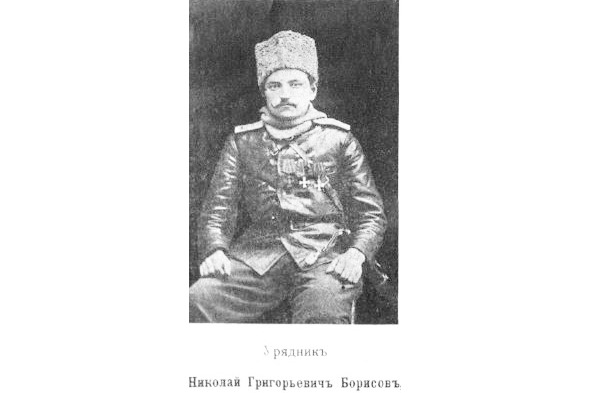 БОРИСОВ Николай Григорьевич (Казак станицы Клетской, хутор Нижне-Затонский, ОВД). – 52 Донской казачий полк, ст. урядник. В Гражданскую войну в Донской армии, в 15 конном полку, подхорунжий. Командир: – Воинов Яков Яковлевич, войсковой старшина, произведен в полковники №1920 от 22.12.1918; в резерв с 21.04.1919 года, приказ №779 от 30.04.1919 года. Награжден Георгиевским крестом 1-й ст., приказ №488 от 18.03.1919 года. Награждён ГК 2 ст. №3001: «За то, что, будучи послан 12.11.1914 на разведку, доставил ценные сведения о противнике, подвергая свою жизнь опасности». Награждён ГК 3 ст. №4921: Вместо креста 4 ст. №172149. Награждён ГК 4 ст. №48694: «За отличия, оказанные в делах против неприятеля». Награждён ГК 4 ст. №172149: «За то, что в ночь с 8-го на 9.10.1914, переправившись на левый берег р. Вислы, по грязному оврагу, ползком пробрался за линию сторожевого охранения австрийцев, там он наткнулся на конную заставу в 0.5 версты от берега и телефонную проволоку, перерезал ее, собрал несколько аршин и, когда был обнаружен противником, не растерялся, а отстреливаясь, прорвался обратно через сторожевое охранение и, вернувшись в полк, доложил точно, что левый берег охраняется австрийской кавалерией».