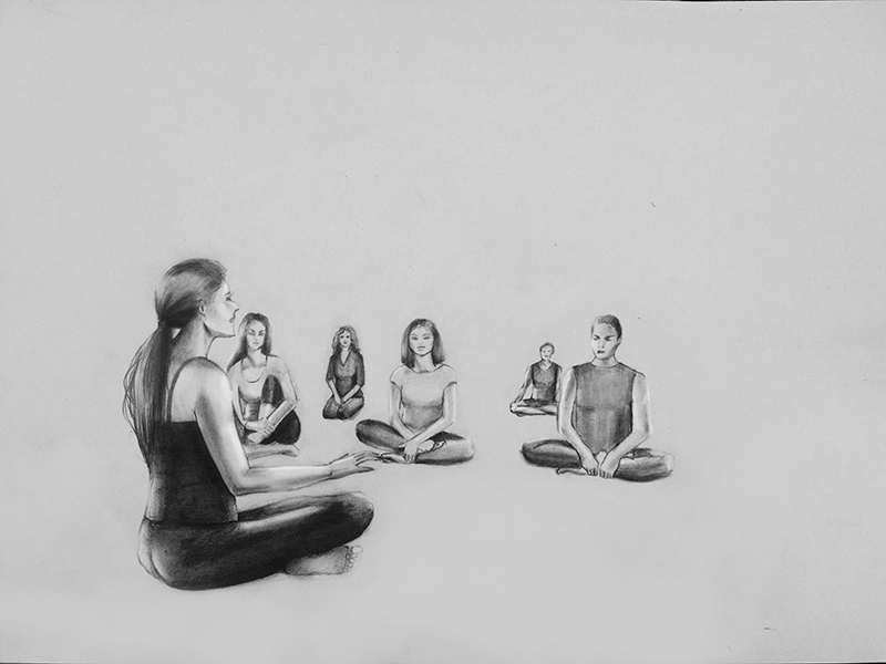 – Садимся в удобную позу, закрываем глаза. Делаем вдох, на выдохе выводим из себя всю негативную информацию, которую мы получили за день, вдох – вбираем чистую, светлую энергию, выдох – выводим негативную, ненужную энергию. Оставляем все события сегодняшнего дня за дверями зала и настраиваемся на практику. Делаем ещё один глубокий вдох-выдох и открываем глаза