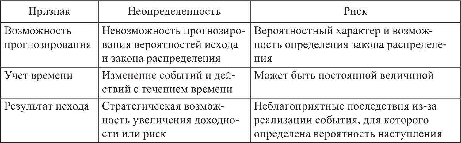 Отличительные особенности неопределенности и риска