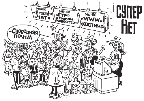 Электронная почта работает на основе почтового протокола POP (Post Office Protocol). Принцип его действия простой. В почтовой программе вы пишете письмо и отправляете его на сервер своей исходящей почты. Затем письмо начинает путешествовать по Сети, пока не доберется до сервера входящей почты адресата. Там письмо хранится, пока получатель не соединится с Интернетом и не загрузит его (письмо) в свою почтовую программу с сервера входящей почты. После чего, если письмо его заинтересует, адресат напишет вам ответ.