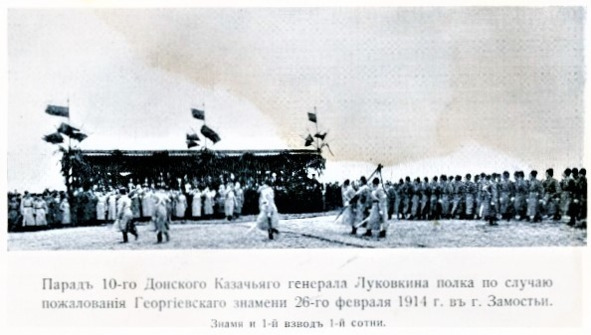 10 Донской казачий полк на параде 1914 год. В этом полку первой очереди служили казаки станицы Митякинской и его хуторов.