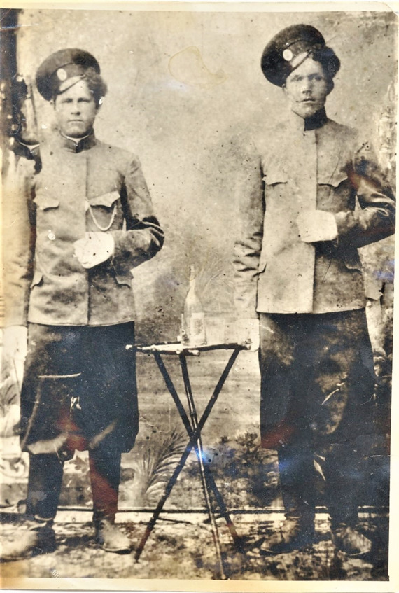 Можаев Фёдор Семёнович и Исаев Василий Илларионович, казаки станицы Митякинской хутора Средне Митякинского Фото Исаева Ф. И.