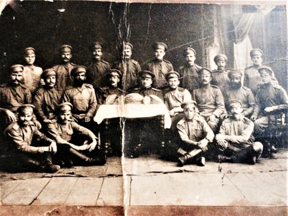 Грешнов Пётр Антонович в центре фото, атаман хутора Никишин во время службы в 10 ДКП. Фото Грешнова Николая.
