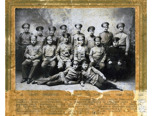 На память об объявлении войны 1914 года. Фото станичных писарей Донецкого округа.