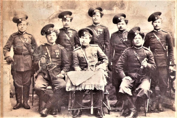 Лучшие сыны тихого Дона, 1904г. Вахмистр Герасим Никишин стоит в центре, у него аксельбант. хутор Нижне Митякинский станицы Митякинской. фото Дьяковой Т.