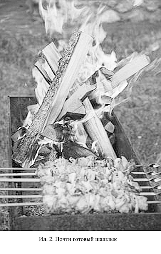 Они замолчали, перевернули шампуры и залили появившийся огонь в углях мангала. Тепло от углей немного ослабло, и Михаил решил помахать над углями обычной фанеркой, раздувая их ветерком от неё. Процесс готовки мяса шёл так, как надо. Тогда Михаил продолжил беседу далее: