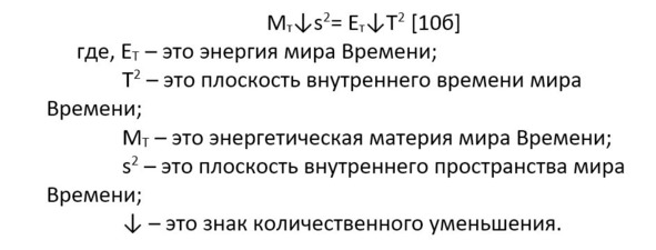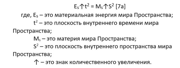 По нашим предположениям это уже будет «смерть» в мире Времени, а для нас это будет материальное «рождение» в мире Пространства. Мы получаем после рождения сужающее время и пространство мира Времени, то есть – это то же самое разложение тела только во Времени. Вытекающие частицы из формулы 10б вполне могут «втекать» в формулу 7а, где они могут стать частицами, которые дают нам новое расширение в мире Пространства и новую жизнь.