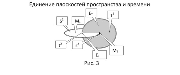 Теперь давайте представим себе, что мы имеем одновременно и мир Пространства, и мир Времени (рисунок 3), что наши формулы 7 и 10 работают как бы одновременно и параллельно. На этом рисунке 3 мы одновременно и структурно разместили два больших мира: Пространства (+S) и Времени (+T), сделав их пока плоскими.