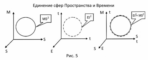 Итак, при исследовании формулы 1 Эйнштейна, мы пришли к выводу, что существует «сфера» Пространства, в которой «работает» её развёрнутая формула 7 и «сфера» Времени, в которой работает её развёрнутая формула 10. В центре этой «сферы» Пространства, как показано на рисунке 7а, оказывается сгусток материальной энергии в плоскости времени – Et, а внутри «сферы» располагается материя в пространстве – MS. s s 2 2
