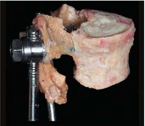 Рис. 7. Металлическая конструкция для фиксациисегментапозвоночногостолба. Натуральный анатомический препарат