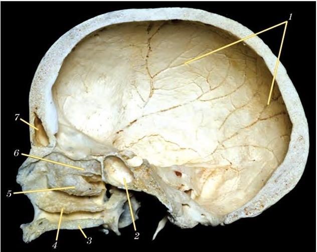 Рис. 16. Височная кость. Вид изнутри. Натуральный анатомический препарат:
