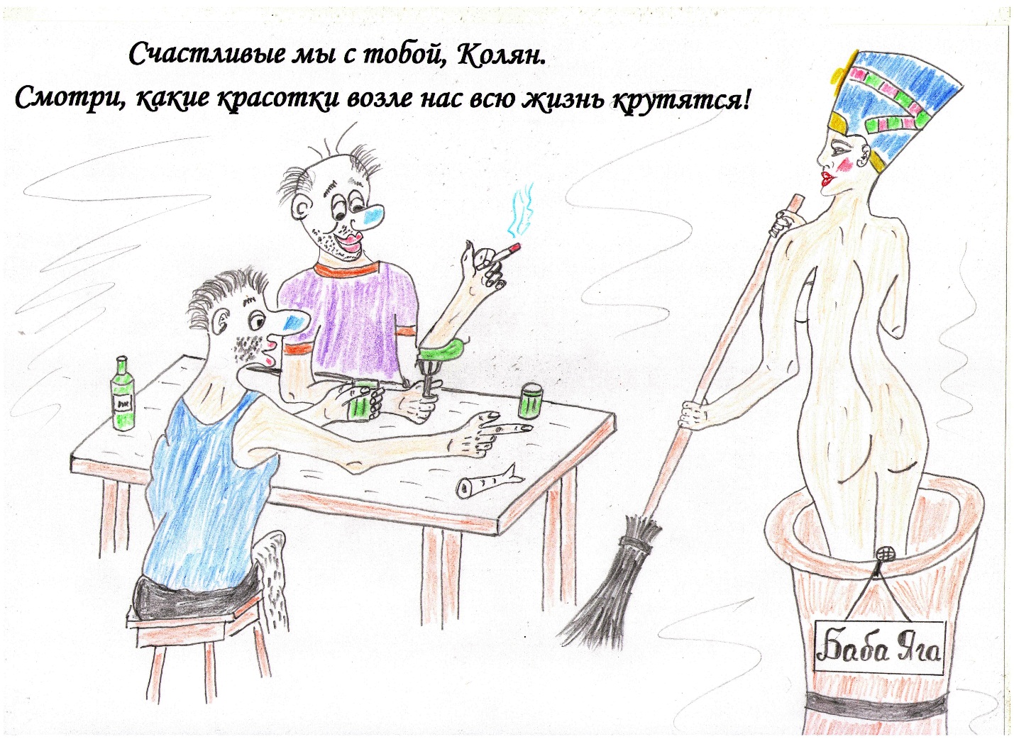 И снова, только «жизнь стали налаживать…» Из тазика… Чтобы быстрее… Из-под дивана гномы вылезли и уселись Белоснежку ждать. Тесть сразу крикнул: «Водки нет!» И показал всем кукиш. А тёща тут же им призналась, что это она Белоснежка, и пустилась с ними в пляс. Тесть прищурился: «Это не танцы, это хоровод в дурдоме». И пообещал морды гномам всем набить. Из ревности.